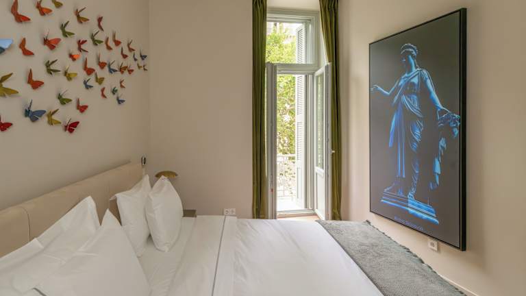 Das Nine Athens Hotel stellt klimatisierte Zimmer zur Verfügung, die mit einem Schreibtisch, einer Kaffeemaschine, einem Kühlschrank, einer Minibar, einem Safe, einem Flachbild-TV und einem eigenen Badezimmer mit Dusche ausgestattet sind. Alle Zimmer verfügen über einen Balkon und sind ergänzt mit einem Wasserkocher, Bettwäsche und Handtüchern.