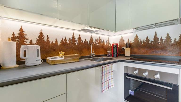Das Chalet verfügt über 2 Schlafzimmer und 2 Badezimmer. Ausgestattet sind die Zimmer mit Bettwäsche und Handtüchern. Eine voll ausgestattete Küche und ein TV runden die Ausstattung ab. Zudem bietet die Terrasse einen beeindruckenden Blick auf die Berge.