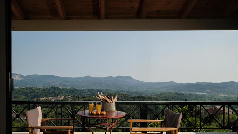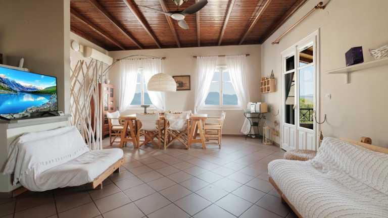 Die Unterkunft Nios House Panoramic Cottage befindet sich in Karousádes, in der malerischen Region der Ionischen Inseln, umgeben von einer schönen Landschaft, die sowohl Stadt- als auch Bergblicke bietet.