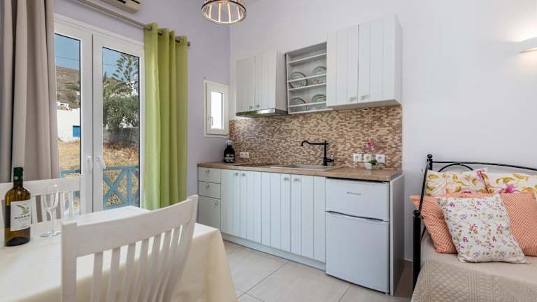 Ein kontinentales Frühstück wird in der Unterkunft Niriides Luxury Studios angeboten. Weiterhin besteht Zugang zu einem voll ausgestatteten privaten Badezimmer mit Dusche und kostenlosen Pflegeprodukten.