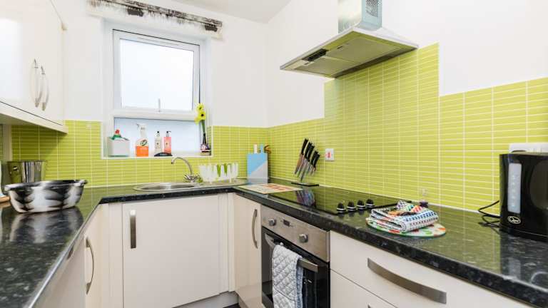 Die Ferienwohnung beinhaltet 1 Schlafzimmer, ein Wohnzimmer und eine voll ausgestattete Küche mit einem Kühlschrank und einem Wasserkocher. Es gibt 1 Badezimmer mit Dusche und Haartrockner. Handtücher und Bettwäsche werden bereitgestellt.