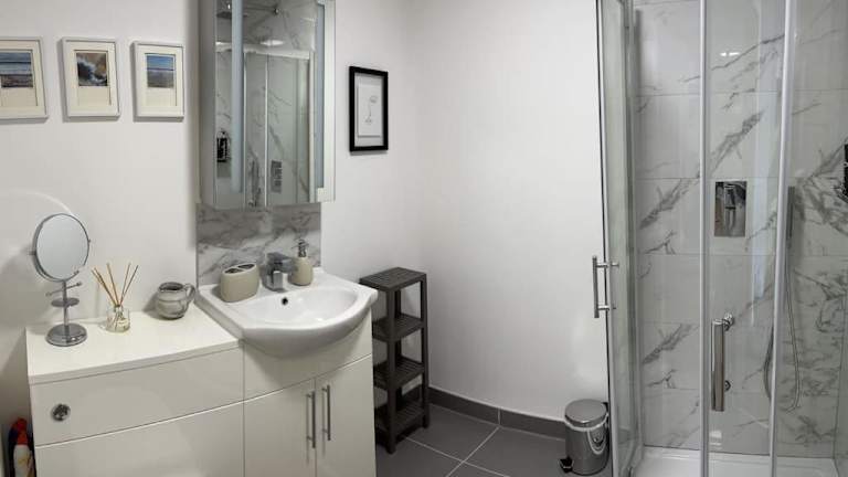 Das Apartment verfügt über 2 Schlafzimmer, die für einen angenehmen Aufenthalt sorgen. Die Küche ist gut ausgestattet mit einem Kühlschrank und einem Geschirrspüler, so dass Sie Ihre eigenen Mahlzeiten zubereiten können. Im Wohnbereich finden Sie einen Flachbild-TV und einen gemütlichen Sitzbereich. Das Badezimmer ist modern und verfügt über eine Dusche. Handtücher und Bettwäsche werden gestellt, um Ihren Aufenthalt so angenehm wie möglich zu gestalten.