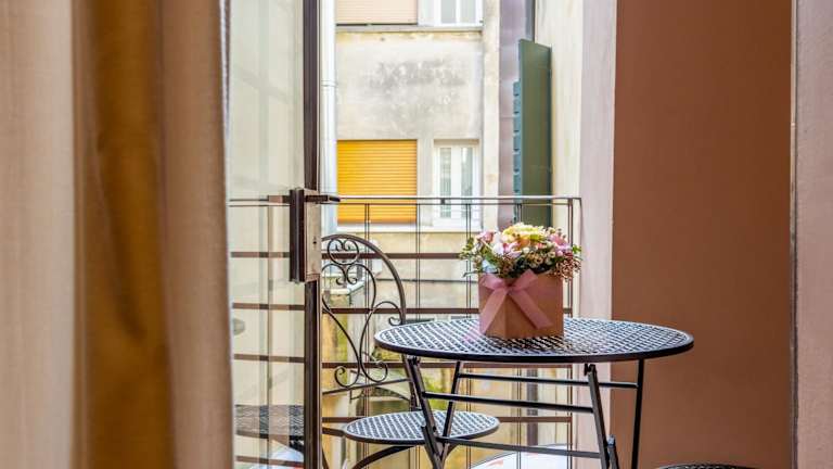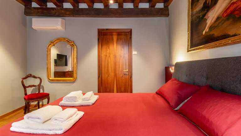 Die Ferienwohnung besteht aus einem Schlafzimmer, einem Wohnzimmer sowie einer voll ausgestatteten Küchenzeile mit Kühlschrank und Kaffeemaschine. Ein Badezimmer mit Bidet und Dusche ist ebenfalls vorhanden. Die Unterkunft bietet zudem Handtücher und Bettwäsche, die nach örtlichen Richtlinien gewaschen werden.