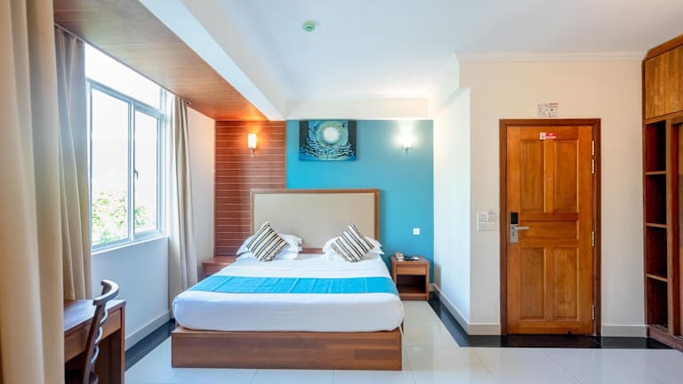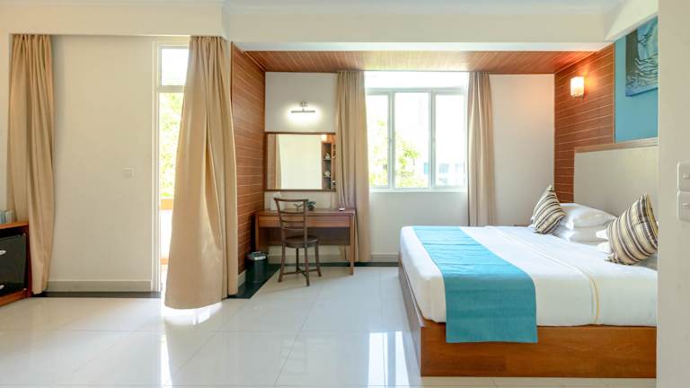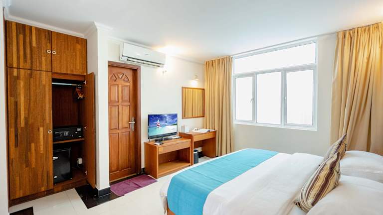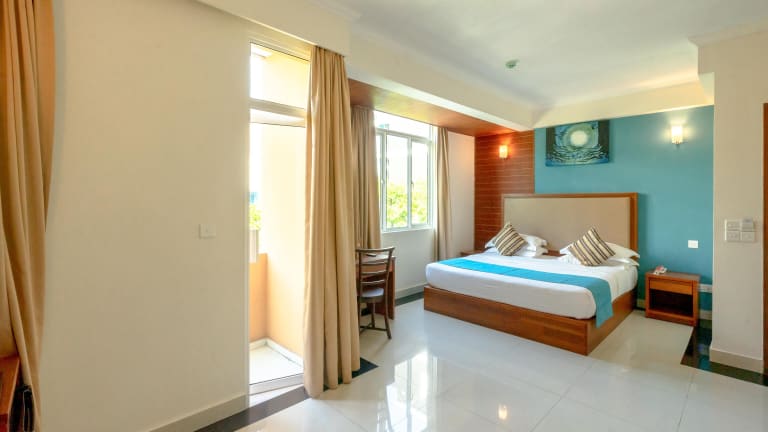 Die Zimmer im Noomoo Hulhumale sind modern ausgestattet und bieten Annehmlichkeiten wie Klimaanlage, einen Schreibtisch, einen Balkon mit Stadtblick sowie ein eigenes Badezimmer. Die Ausstattung umfasst einen Flachbild-TV, Kühlschrank, Bettwäsche und Handtücher. In allen Wohneinheiten ist ein Safe vorhanden, und ausgewählte Zimmer bieten zudem Meerblick.