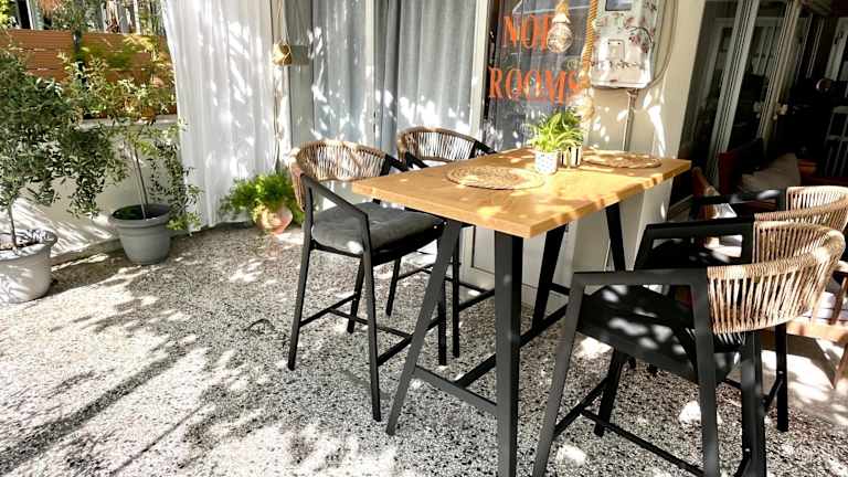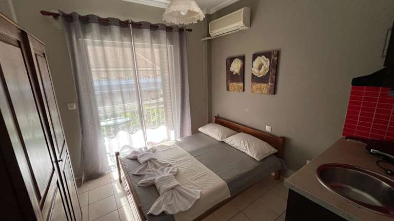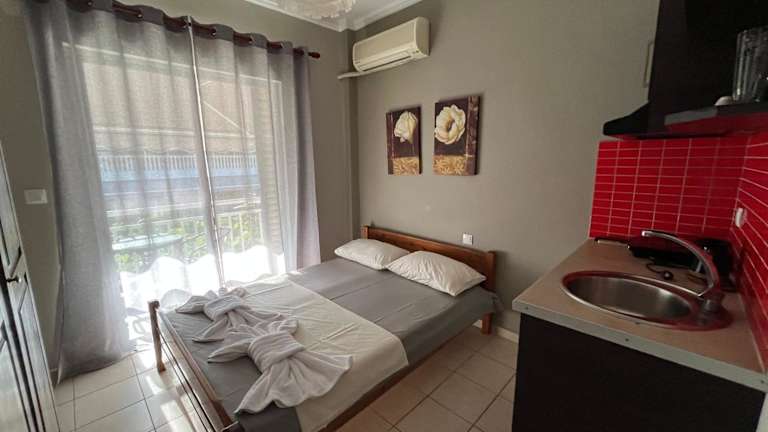 Jede Wohneinheit im Nopi Rooms verfügt über einen Balkon mit Gartenblick und ist mit einer Küchenzeile, einschliesslich Kühlschrank, ausgestattet. Dadurch haben die Gäste die Möglichkeit, ihre eigenen Mahlzeiten zuzubereiten und den Gartenblick zu geniessen.