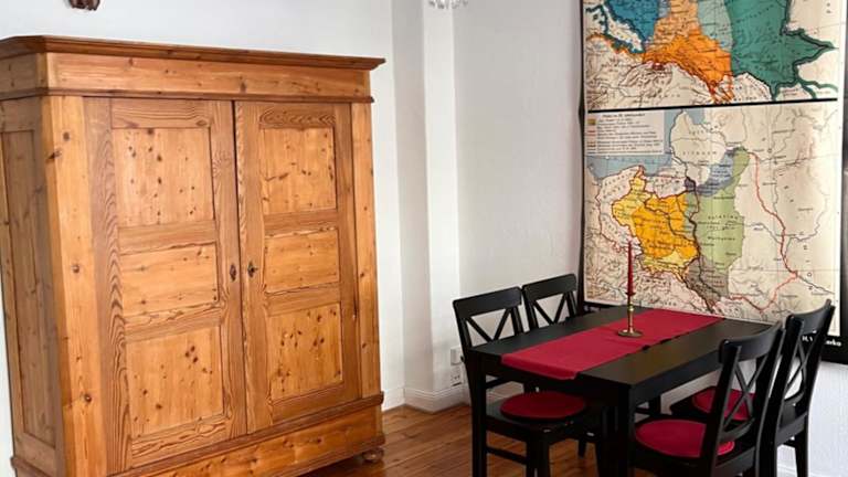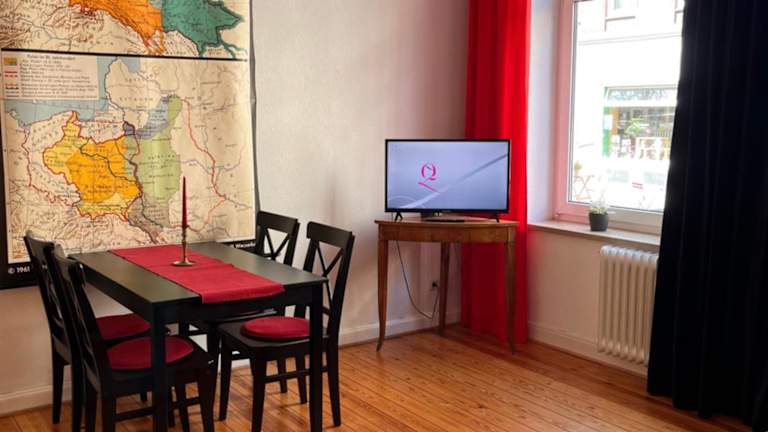 Die Ferienwohnung umfasst 1 Schlafzimmer, ein Wohnzimmer sowie eine voll ausgestattete Küche mit Kühlschrank und Kaffeemaschine. Ein Badezimmer mit Dusche und Haartrockner ist ebenfalls vorhanden. Handtücher und Bettwäsche werden bereitgestellt.