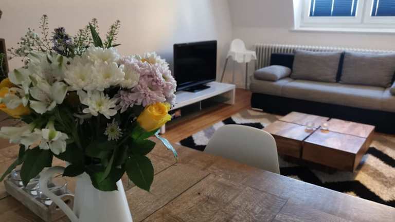 Die Ferienwohnung umfasst ein Wohnzimmer, einen Essbereich, 2 Schlafzimmer und 1 Badezimmer mit einer Dusche. Eine gut ausgestattete Küche mit Kühlschrank, Ofen und Herdplatte steht zur Verfügung. Handtücher und Bettwäsche werden bereitgestellt und ein Blu-ray-Player ergänzt die Ausstattung.