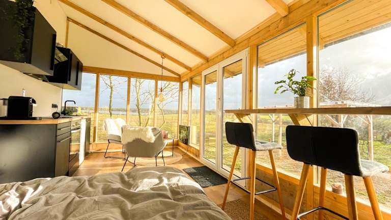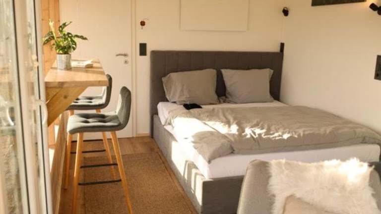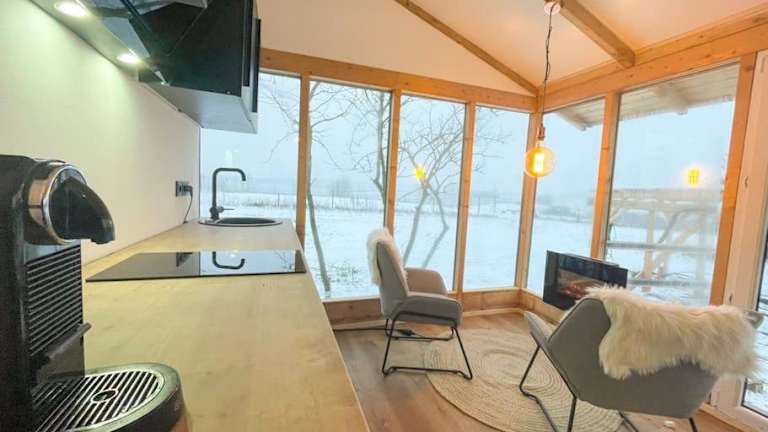 Das Chalet verfügt über ein Schlafzimmer und eine komplett ausgestattete Küche mit Kühlschrank, Ofen und Kaffeemaschine. Handtücher und Bettwäsche sind im Angebot enthalten. Die Unterkunft bietet eine Terrasse und einen Balkon.
