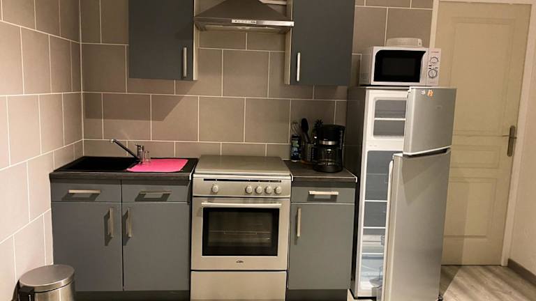 Die Ferienwohnung besteht aus einem Schlafzimmer, einem Wohnzimmer und einer voll ausgestatteten Küche, die mit einem Kühlschrank und einer Kaffeemaschine ausgestattet ist. Zudem gibt es ein Badezimmer mit Dusche und kostenlosen Pflegeprodukten. Handtücher und Bettwäsche werden bereitgestellt.