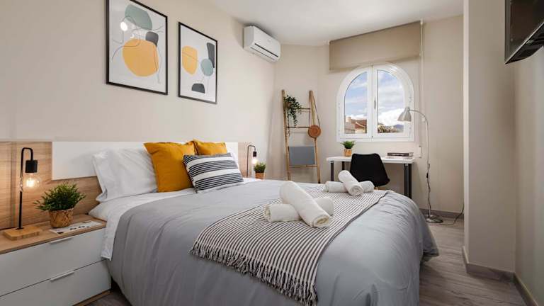 Jedes Zimmer ist ausgestattet mit einem Schreibtisch, einem Flachbild-TV, einem Gemeinschaftsbad sowie mit Bettwäsche und Handtüchern.