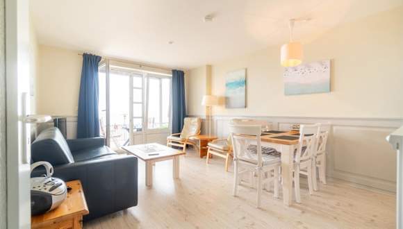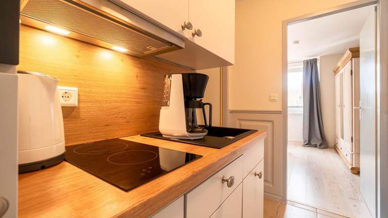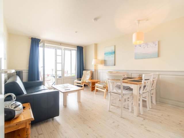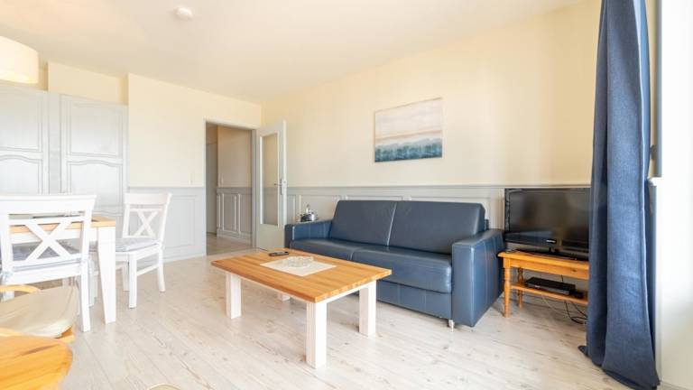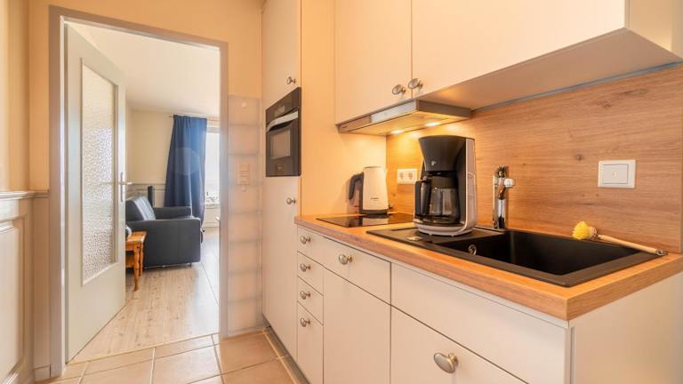 Die Ferienwohnung mit 1 Schlafzimmer bietet ein Wohnzimmer, einen TV und eine gut ausgestattete Küche mit Kühlschrank und Geschirrspüler. Ein Badezimmer mit Dusche ist ebenfalls vorhanden. Handtücher und Bettwäsche werden bereitgestellt.