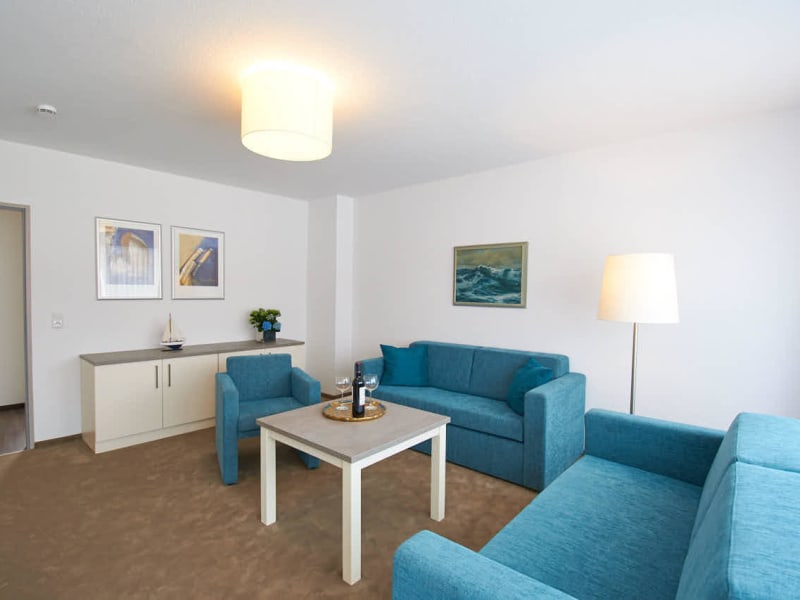 Modern eingerichtete Ferienwohnung mit Nordsee-Flair für 2-6 Personen. Neben dem großzügigen Badezimmer und einer voll eingerichteten Küche befinden sich 2 Schlafzimmer in der Ferienwohnung. Ein Schlafzimmer ist mit einem Ehebett ausgestattet und das andere Schlafzimmer mit zwei Einzelbetten. Somit bietet diese Ferienwohnung eine ideale Unterbringung für Familien.