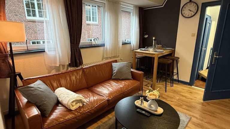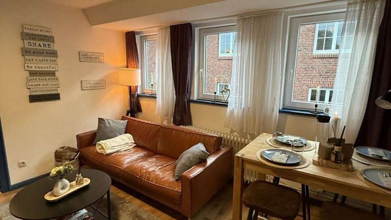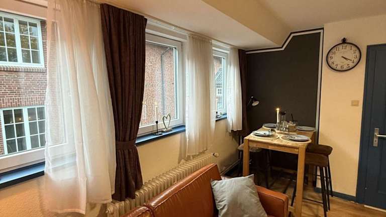 Nordseeglueck-im-Zentrum-Husums bietet Übernachtungsmöglichkeiten in einer Ferienwohnung, die sich in einem Gebäude aus dem Jahr 1979 befindet. Die Unterkunft ist mit einem Balkon und kostenlosem Wifi ausgestattet.