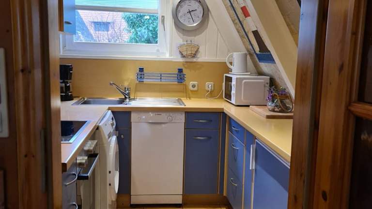 Das Ferienhaus verfügt über zwei Schlafzimmer und ist mit einem TV sowie einer voll ausgestatteten Küche eingerichtet. In der Küche finden die Gäste einen Kühlschrank, Geschirrspüler, Waschmaschine, Ofen und Mikrowelle vor. Handtücher und Bettwäsche werden bereitgestellt.