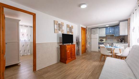 Noria 2 ist eine Ferienwohnung, die mit Klimaanlage ausgestattet ist und über ein separates Schlafzimmer, eine voll ausgestattete Küche sowie ein Badezimmer verfügt. Handtücher und Bettwäsche werden bereitgestellt. Die Unterkunft ist für bestimmte Feiern nicht geeignet und es gibt eine Altersgrenze für den Check-in.