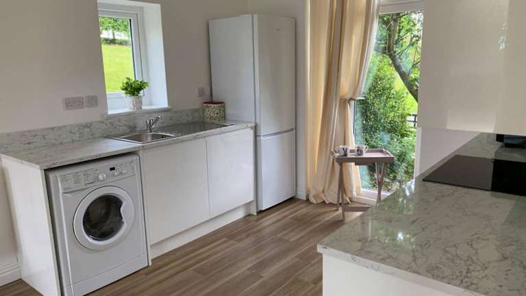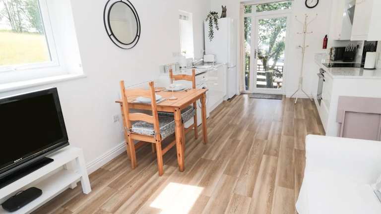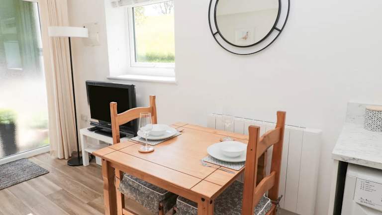 Die Ferienwohnung ist ausgestattet mit einem Schlafzimmer, einem Badezimmer, Bettwäsche und Handtüchern. Zu den Annehmlichkeiten gehören ein Flachbild-TV, ein Essbereich und eine voll ausgestattete Küche. Eine Terrasse mit Gartenblick lädt dazu ein, im Freien zu entspannen.