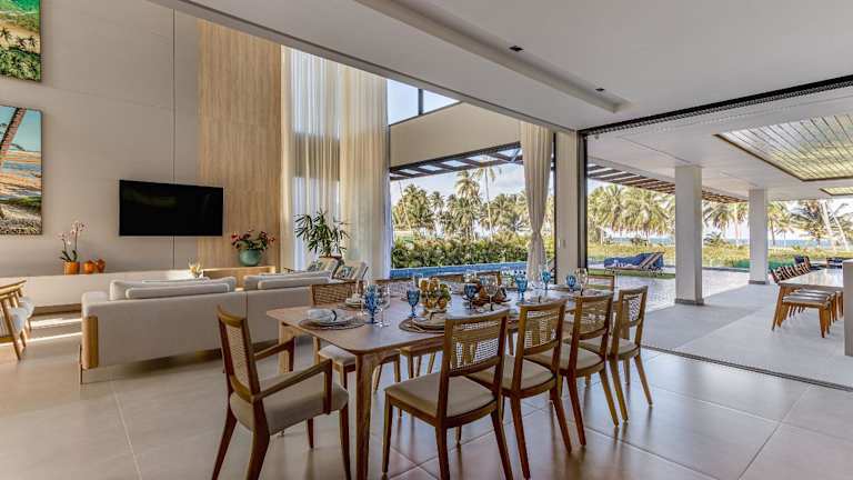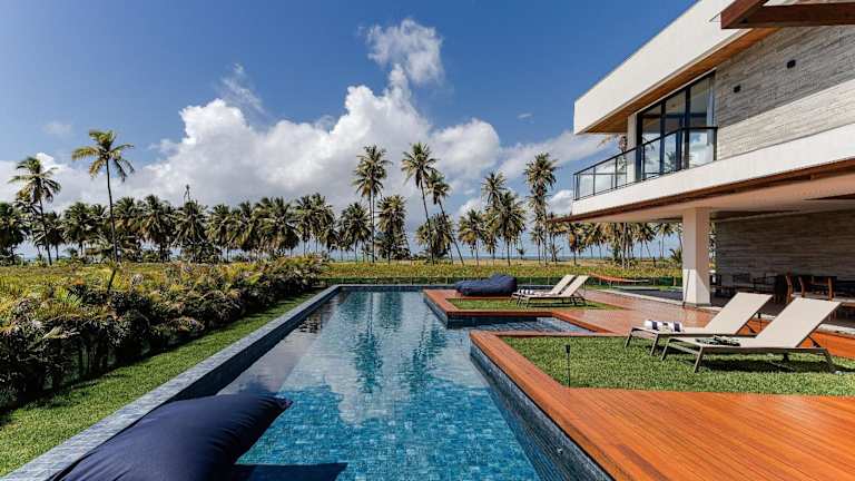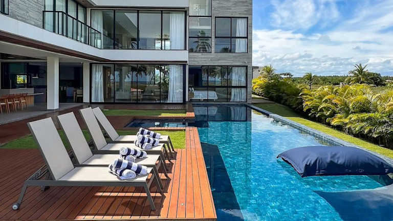 Nossa Casa | Frente Mar bietet eine exklusive Unterkunft mit 5 Suiten in einem heimeligen Ambiente. Zu den Einrichtungen gehören ein eigener Pool, ein Garten, eine Bar sowie ein Conciergeservice. Gäste können den kostenlosen Privatparkplatz nutzen und von einem Kinderspielplatz profitieren.