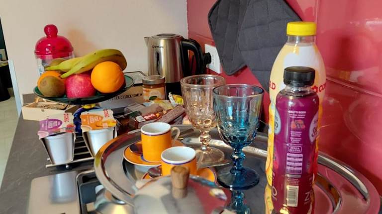 Die Ferienwohnung besteht aus einem Schlafzimmer, einem Wohnzimmer und einer voll ausgestatteten Küche, die unter anderem über einen Kühlschrank und eine Kaffeemaschine verfügt. Zudem gehört ein Badezimmer mit Dusche und Bidet zur Ausstattung. Handtücher und Bettwäsche werden bereitgestellt.