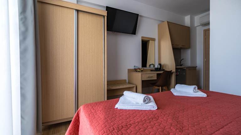 Die Wohneinheiten sind klimatisiert und mit Fliesenböden ausgestattet. Jedes Zimmer verfügt über ein eigenes Badezimmer mit Dusche und Haartrockner. Die Ausstattung umfasst zusätzlich einen Flachbild-TV, einen Schreibtisch sowie eine Küchenzeile.