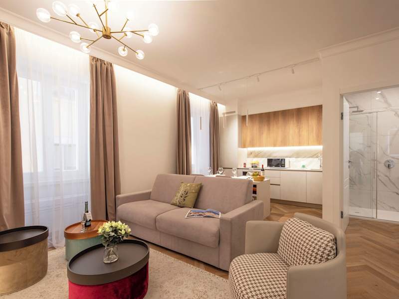 Die Wohneinheiten umfassen eine voll ausgestattete Küche mit Kühlschrank, Geschirrspüler, Ofen, Mikrowelle sowie eine Kaffeemaschine und einen Wasserkocher. Außerdem sind ein Essbereich, ein Flachbild-TV mit Satellitenkanälen und ein eigenes Badezimmer mit Dusche und Haartrockner vorhanden. Einige Einheiten sind als Familienzimmer verfügbar.