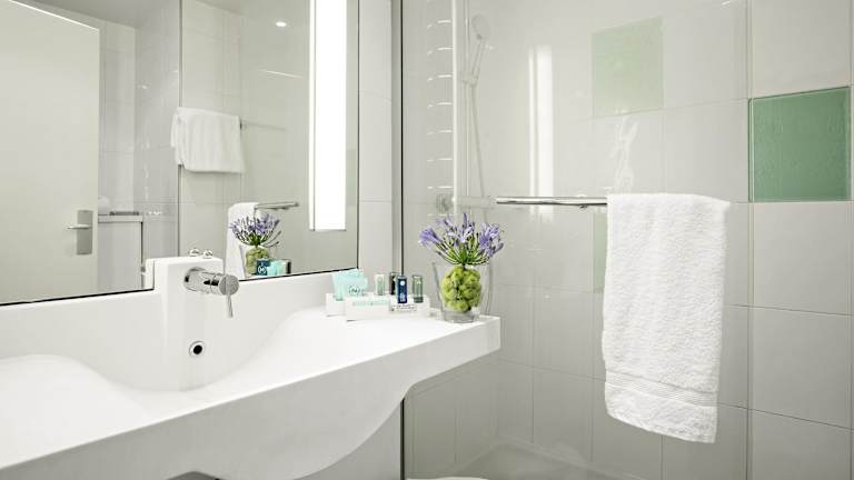 Die Zimmer des Hotels sind mit Teppichböden ausgestattet und bieten eine Klimaanlage sowie eine Heizung. Jedes Zimmer verfügt über ein Doppelbett, ein Sofabett, einen Safe, eine Minibar, einen Schreibtisch und einen Minikühlschrank. Auch eine Tee- und Kaffeemaschine sowie ein Bügelset sind vorhanden. Die Badezimmer sind mit Dusche und Badewanne ausgestattet und umfassen Kosmetikartikel sowie eine Auswahl an Handtüchern. Es gibt auch rollstuhlgerechte Zimmer.
