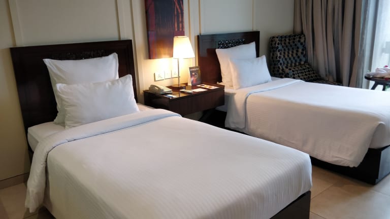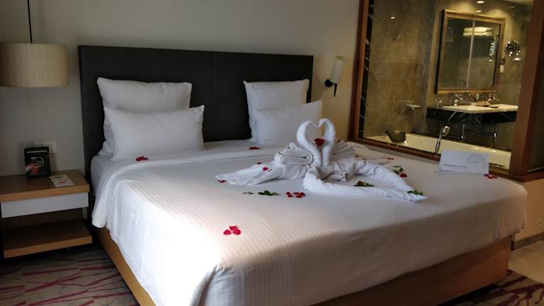 Die klimatisierten Zimmer verfügen über einen Balkon, ein Doppelbett, einen Safe, eine Minibar und einen Schreibtisch. Zudem sind ein Minikühlschrank und eine Tee-/Kaffeemaschine vorhanden. Weitere Annehmlichkeiten beinhalten einen Föhn, Kosmetikartikel und eine Dusche im Badezimmer. Rollstuhlgerechte Zimmer mit barrierefreiem Badezimmer sind buchbar. Familien-, Nichtraucher- und Raucherzimmer stehen ebenfalls zur Auswahl.