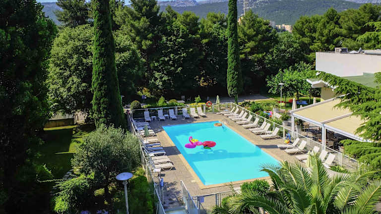 Das Novotel Marseille Est Porte d'Aubagne befindet sich im östlichen Teil von Marseille, nur 11 km vom Stadtzentrum entfernt und in der Nähe der Autobahn A50. Der Flughafen liegt etwa 29 km entfernt, während die Strände in einer Distanz von 12 m erreicht werden können. In der Umgebung finden sich der Bahnhof La Timone in rund 12 km Entfernung sowie Geschäfte und öffentliche Verkehrsanbindungen, die ca. 2 km entfernt sind.