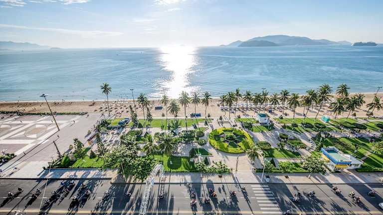 Das Hotel liegt direkt am Tran Phu Boulevard, der über mehrere Kilometer dem Küstenverlauf von Nha Trang folgt. Es befindet sich nur wenige Schritte vom Strand entfernt und ist gut an lokale Sehenswürdigkeiten angebunden, wie das Nha Trang Museum, das 1 km entfernt ist, und die Long Son Pagode des Weissen Buddha, die sich etwa 3 km entfernt befindet.