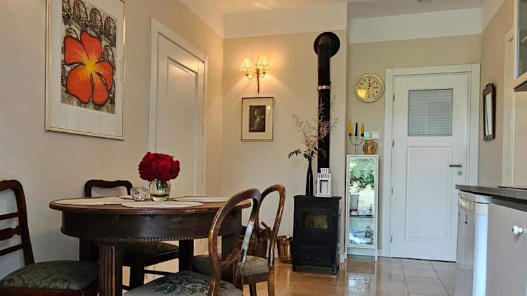 Es gibt eine Gemeinschaftsküche, die zur Selbstverpflegung genutzt werden kann. Gereichte Snacks oder verschiedene Mahlzeiten können somit bequem zubereitet werden. Der Aufenthaltsbereich ist ideal für gesellige Stunden, während Sie Ihre selbst zubereiteten Köstlichkeiten geniessen.