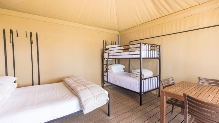 Die Unterkünfte im Lake Somerset Holiday Park sind vielfältig und reichen von einfachen Zelten bis hin zu komfortablen Hütten und Ferienwohnungen. Einige Zimmerkategorien bieten zusätzlich einen Wohn- und Essbereich sowie eine Küche. Alle Zimmer sind mit einem Kühlschrank ausgestattet und beinhalten Bettwäsche und Handtücher.