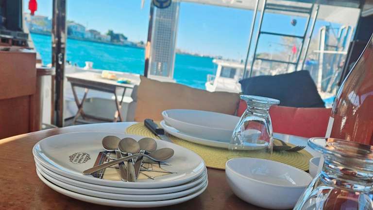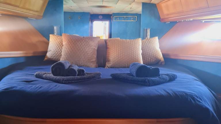 Das Boot verfügt über 3 Schlafzimmer und ein Wohnzimmer mit einem Flachbild-TV. Die gut ausgestattete Küche bietet alles Notwendige, um selbständig zu kochen. Zudem stehen 2 Badezimmer mit Dusche und kostenlosen Pflegeprodukten zur Verfügung. Handtücher und Bettwäsche werden bereitgestellt.