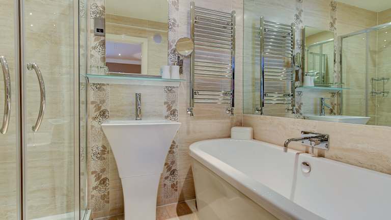 Die Zimmer sind luxuriös mit Designer-Tapeten und Bettwäsche ausgestattet. Jedes Zimmer verfügt über einen Whirlpool, einen 42-Zoll-TV/DVD-Player, und die Badezimmer sind mit einem Flachbild-TV, einer Musikanlage, flauschigen Bademänteln und einer Massagedusche ausgestattet.