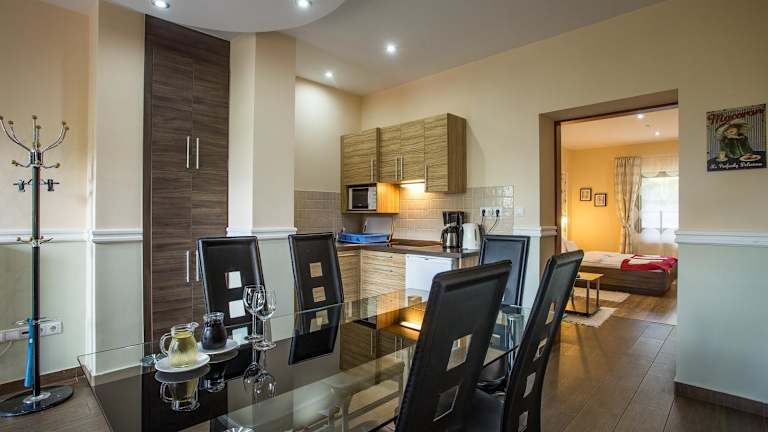Das Nyírfa Apartmanház bietet eine heimelige Atmosphäre mit modernen Möbeln und Massivholzböden. Gäste profitieren von kostenlosem WLAN und einem Garten mit Terrasse und Grillplatz. Es stehen kostenlose Parkiermöglichkeiten zur Verfügung. Die Unterkunft hat Nichtraucherzimmer und ist allergikerfreundlich.