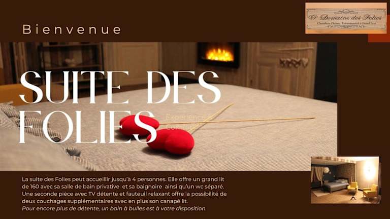 O' Domaine des Folies bietet Übernachtungsmöglichkeiten mit einem Garten, kostenlosem Privatparkplatz, einer Gemeinschaftslounge und einer Terrasse. Zu den Einrichtungen zählen ein Restaurant, eine Gemeinschaftsküche, Zimmerservice sowie kostenloses WLAN. Die Unterkunft ist rund um die Uhr besetzt und bietet weitere Annehmlichkeiten wie einen Whirlpool und Animateure.