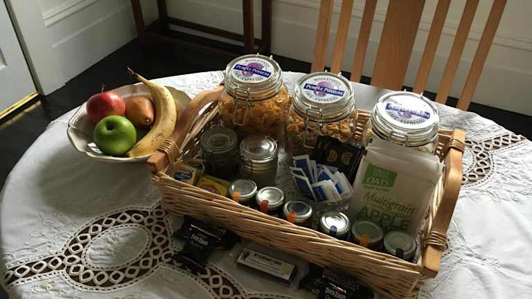 Die Unterkunft bietet Frühstücksmöglichkeiten, auch im Zimmer. Im Angebot sind frisches Obst und weitere nahrhafte Zutaten. Gäste finden im Essbereich alles für ein genussvolles Frühstück, ideal für einen gelungenen Start in den Tag.