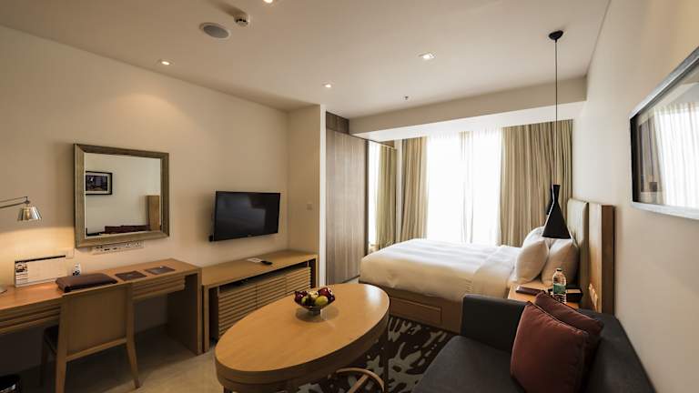 Die Zimmer in der Oakwood Residence Whitefield Bangalore bieten eine Kochnische mit Kühlschrank, Mikrowelle und Tee-/Kaffeekochmöglichkeiten. Für das angenehme Raumklima sorgt eine Klimaanlage. Jedes Zimmer verfügt über einen Balkon, ein Wohnzimmer sowie komfortable Schlafzimmer mit separaten Betten. Badezimmer sind mit Dusche und Badewanne ausgestattet.