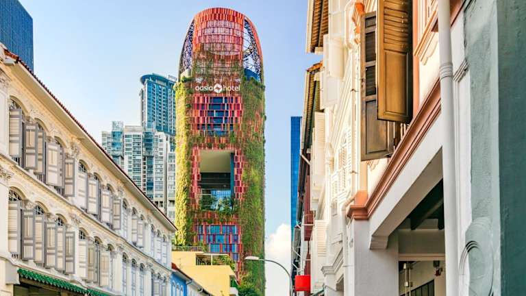 Das Oasia Hotel Downtown in Singapur bietet seinen Gästen ein einzigartiges Erlebnis inmitten einer urbanen Landschaft. Mit einer grünen Fassade und einem vertikalen Garten strahlt das Hotel eine lebendige und erholsame Atmosphäre aus. Die Lage direkt am MRT-Bahnhof Tanjong Pagar ermöglicht eine bequeme Anbindung an die Stadt. Das Hotel verfügt über moderne Einrichtungen wie einen Fitnessraum, Tagungs- und Veranstaltungsräume sowie zwei Restaurants und Bars. Entspannen Sie in den Außenpools auf der Dachterrasse oder im exklusiven Infinity-Innenpool der Club Zimmer. WLAN ist in der gesamten Unterkunft kostenlos verfügbar. Die Zimmer sind klimatisiert und bieten Annehmlichkeiten wie einen Flachbild-TV, Kaffee- und Teezubereitungsmöglichkeiten sowie ein eigenes Bad mit Pflegeprodukten. Das All-inclusive-Erlebnis der Club Zimmer umfasst zusätzliche Wellness- und Fitnesseinrichtungen sowie privaten Zugang zur Club Lounge. Das Hotel ist die perfekte Wahl für Paare und liegt in einem beliebten Stadtteil von Singapur.