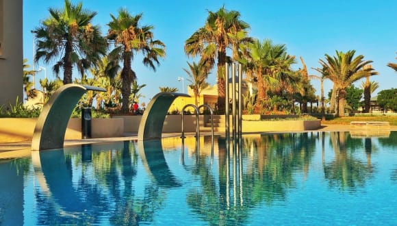 Das Sport- und Freizeitangebot umfasst drei Outdoorpools, die mit Liegen und Sonnenschirmen ausgestattet sind. Für sportliche Aktivitäten stehen Tennis, Volleyball, Basketball und Golf zur Verfügung. Wassersportliebhaber können sich am Windsurfen, Kitesurfen, Jetskifahren und Tauchen erfreuen. Ein Fitnessraum, Aerobic und Billard runden das Sportangebot ab. Der Wellnessbereich bietet eine Sauna und Massagen sowie diverse Anwendungen.