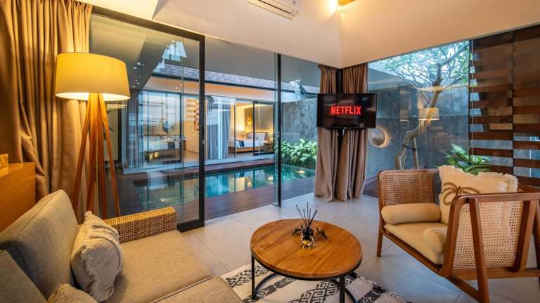 Die Villa umfasst 3 Schlafzimmer und 2 Badezimmer. Zur Ausstattung gehören Bettwäsche, Handtücher, ein Flachbild-TV, ein Essbereich und eine voll ausgestattete Küche. Ein Balkon mit Gartenblick ist ebenfalls vorhanden.