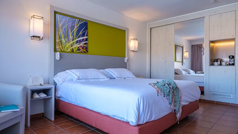 Die Zimmer sind ausgestattet mit Klimaanlage und Heizung. Sie verfügen über einen Balkon oder eine Terrasse, die einen Blick auf den Garten oder den Pool bieten. Die Zimmer sind mit einem Flachbild-TV, einem Telefon, einer Minibar und kostenlosem WLAN ausgestattet. Jedes Zimmer hat ein eigenes Badezimmer mit Dusche und Haartrockner. Nichtraucherzimmer sind ebenfalls verfügbar.