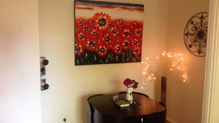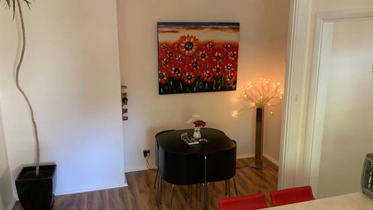 Die Unterkunft umfasst ein Schlafzimmer und ein Badezimmer. Gäste finden hier Bettwäsche, Handtücher, einen Flachbild-TV sowie einen Essbereich. Die voll ausgestattete Küche ermöglicht die Zubereitung eigener Mahlzeiten. Die Terrasse mit Gartenblick sorgt für zusätzliche Bequemlichkeit.