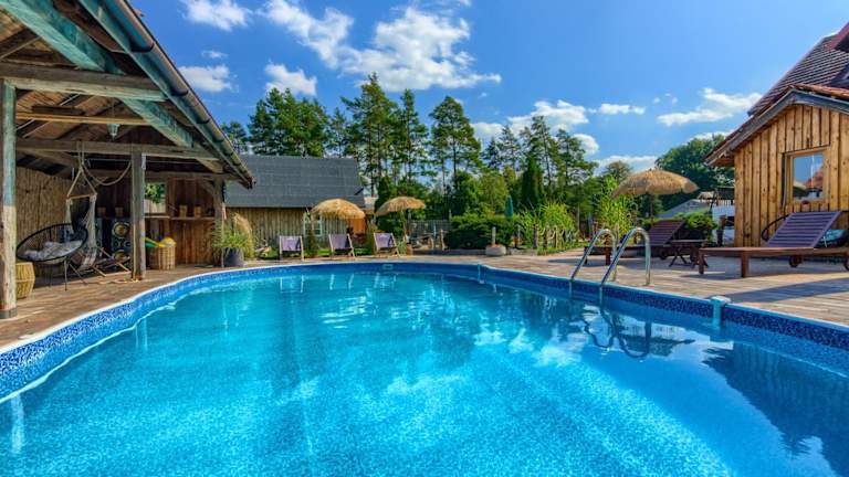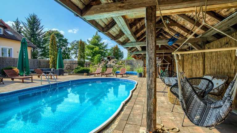 Oaza Mazurska - Domek z kominkiem ist eine charmante Unterkunft mit Gartenblick, welche Übernachtungsmöglichkeiten in heimeliger Atmosphäre bietet. Die Unterkunft verfügt über einen saisonalen Aussenpool, eine Terrasse und ein eigenes Restaurant. Gäste haben die Möglichkeit, sich am eigenen Strandbereich zu entspannen und den Whirlpool oder die Grillmöglichkeiten zu nutzen.