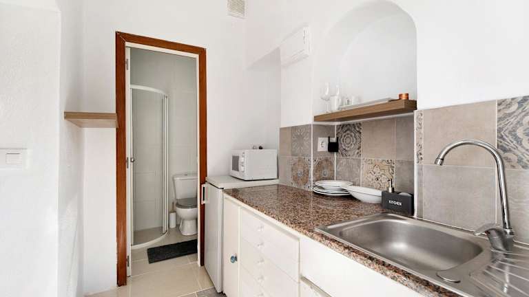 Die Unterkunft beinhaltet ein Schlafzimmer und ein Badezimmer, sowie Bettwäsche und Handtücher. Ein TV mit Kabelkanälen, eine voll ausgestattete Küche und eine Terrasse bieten einen schönen Blick auf den Garten.