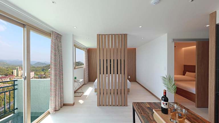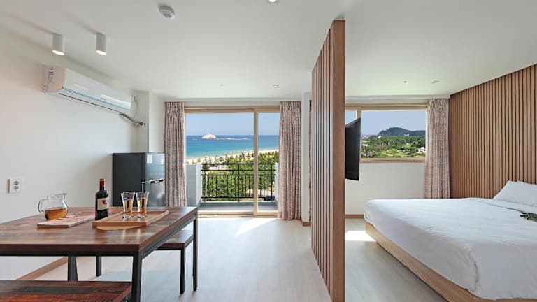 Beim Check-in erhalten die Gäste ein Zimmer mit Bett oder ein Ondol-Zimmer. Die Zimmer sind vollständig klimatisiert und verfügen über Einrichtungen für einen angenehmen Aufenthalt. Haustiere sind in bestimmten Zimmertypen erlaubt, maximal zwei Hunde mit einem maximalen Gewicht von 7 kg pro Hund.