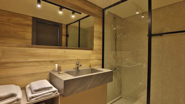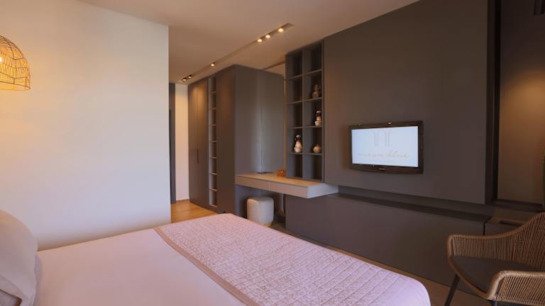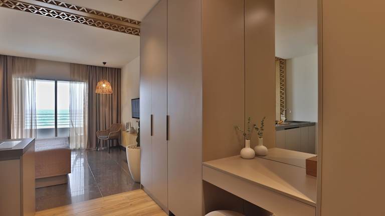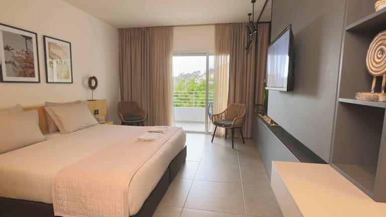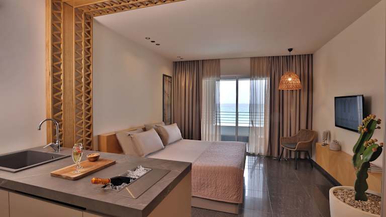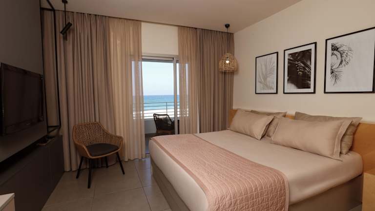 Die klimatisierten Zimmer sind mit einem Flachbild-TV, einem Kühlschrank sowie Tee- und Kaffeezubehör ausgestattet. Jedes Zimmer hat ein privates Bad mit Dusche, Bidet und kostenlosen Pflegeprodukten. Zudem bieten die Zimmer eine Aussicht auf das Mittelmeer, was einen besonders schönen Rahmen für entspannte Ferienmomente schafft.