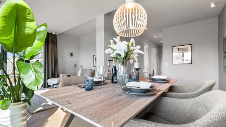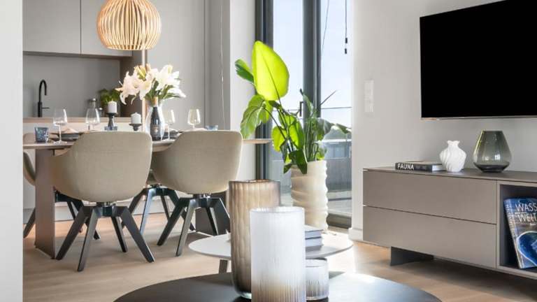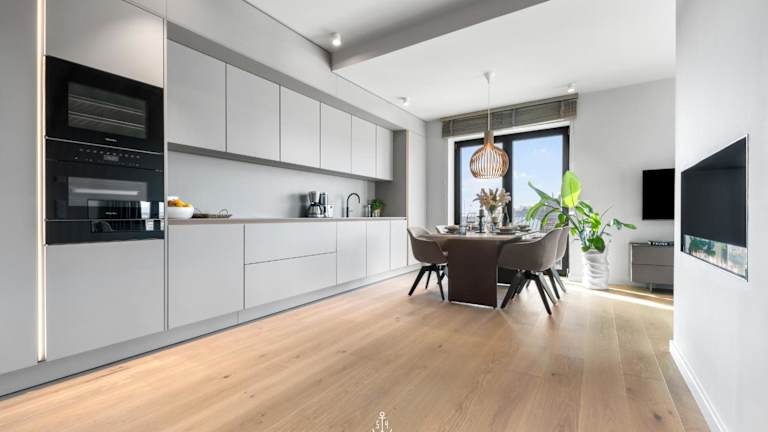 Die Ferienwohnung verfügt über eine gut ausgestattete Küche mit Kühlschrank, Geschirrspüler und Ofen, was Gästen die Möglichkeit bietet, ihre eigenen Mahlzeiten zuzubereiten. Keine Informationen zu Verpflegungsmöglichkeiten vorhanden.