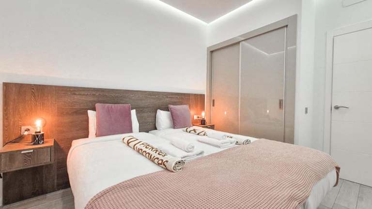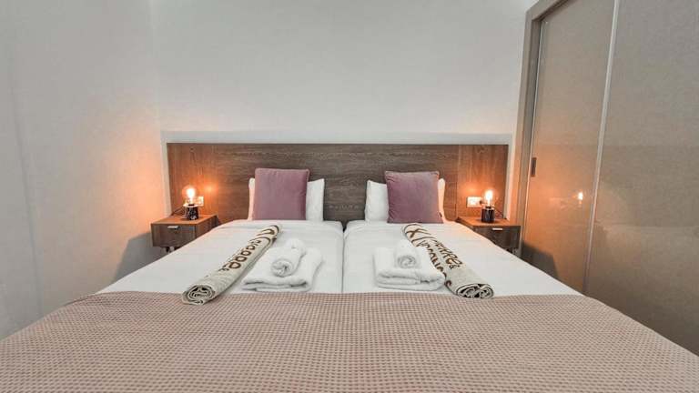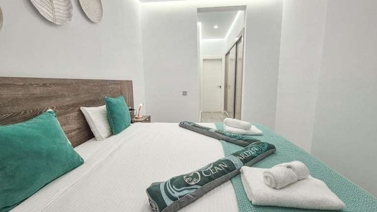 Die Ferienwohnung ist mit 2 Schlafzimmern, einer Küche mit Kühlschrank und Geschirrspüler, einem Flachbild-TV, einem Sitzbereich und 2 Badezimmern mit Bidet ausgestattet. Handtücher und Bettwäsche werden zur Verfügung gestellt.