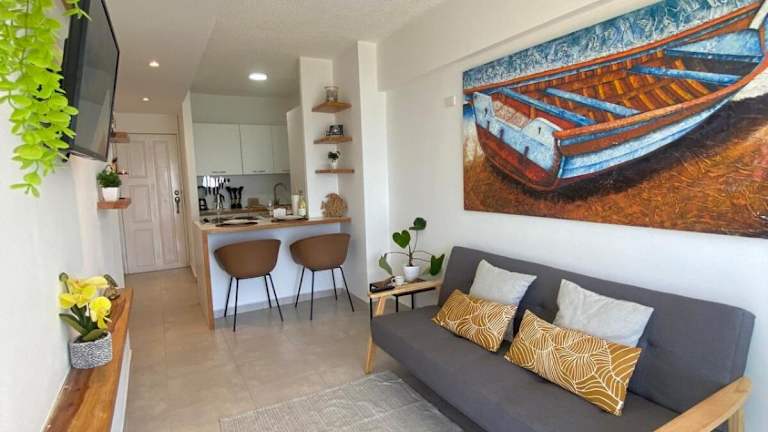 Die Unterkunft Ocean View. Acogedor Apartamento frente al mar bietet einen Garten und einen eigenen Strandbereich. Gäste haben Zugang zu einer Sonnenterrasse und einem Kinderspielplatz. Zudem wird ein kostenpflichtiger Flughafentransfer angeboten.