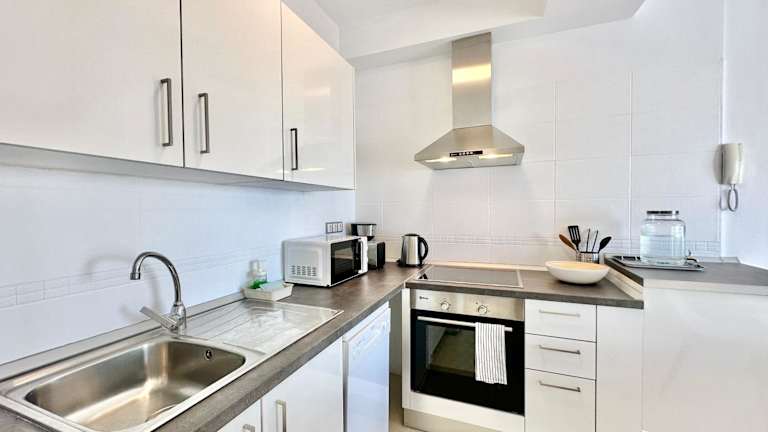 Die Ferienwohnung verfügt über ein Schlafzimmer, ein Wohnzimmer mit einem Flachbild-TV sowie eine gut ausgestattete Küche mit Kühlschrank und Geschirrspüler. Ein Badezimmer mit Dusche, Handtücher sowie Bettwäsche sind ebenfalls vorhanden.
