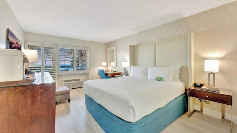 Das Ocean View Hotel in Santa Monica bietet eine erstklassige Lage mit herrlichem Blick auf den Pazifischen Ozean und den Santa Monica Pier. Das Hotel ist nur wenige Gehminuten vom Strand entfernt und bietet eine Vielzahl von Annehmlichkeiten wie kostenloses WLAN und einen Fahrradverleih. Die Zimmer sind geschmackvoll eingerichtet und verfügen über Kabel-TV, eine Kaffeemaschine und ein Bügeleisen/-brett. Deluxe Zimmer bieten zudem einen eigenen Balkon und einen Minikühlschrank. Das Hotel bietet auch geführte Touren in die Umgebung sowie einen 24-Stunden-Rezeptionsservice und ein Businesscenter.